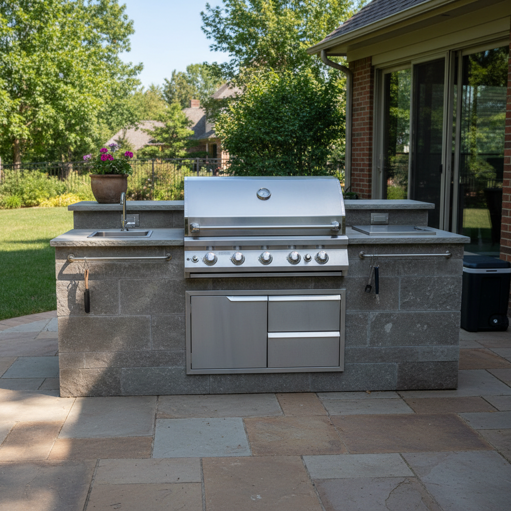 This setup brings together workspace, storage, and durability in a clean, modern form. It supports smooth transitions between prep, cooking, and serving, helping your outdoor area feel organized, intentional, and ready for any gathering.